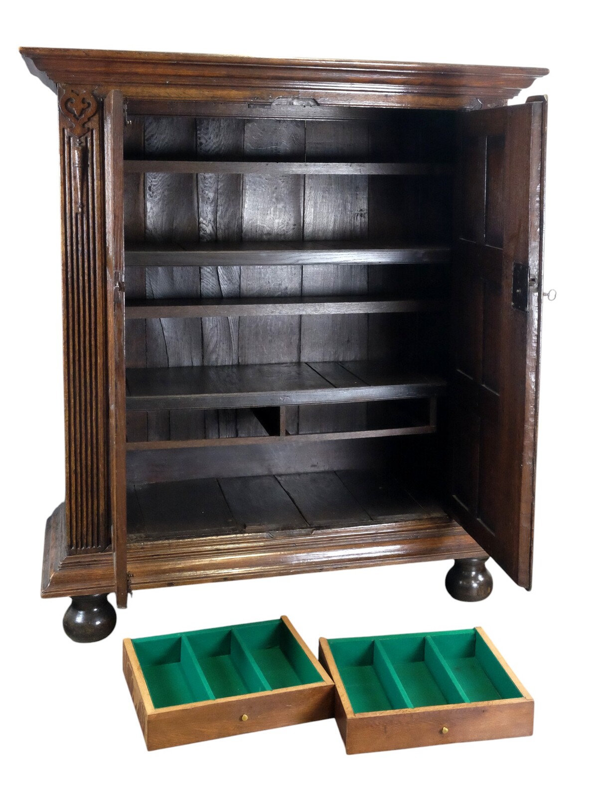 The drawers are fitted with green felt as cutlery drawers.