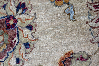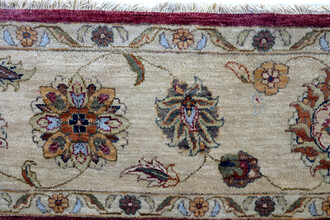The rug is in excellent condition – clean, free of stains, with perfectly intact borders and headboards. The knots are firm, and the surface is thick and full, indicating a high knot density and longevity.