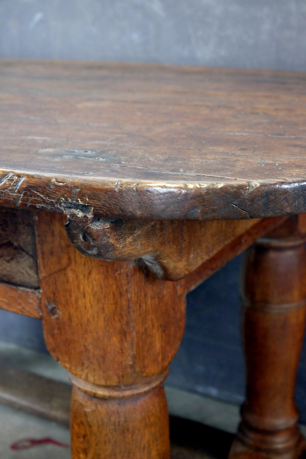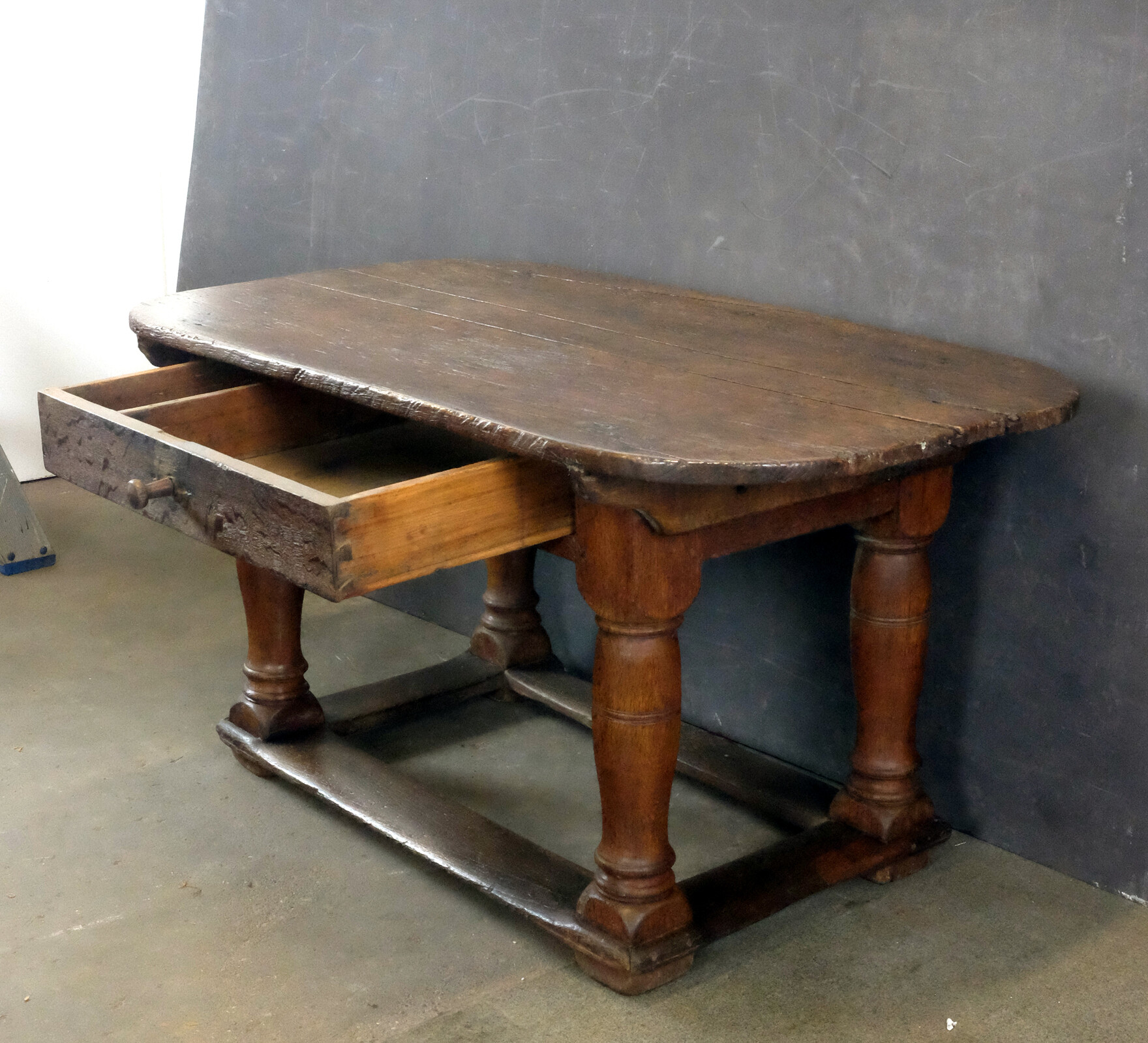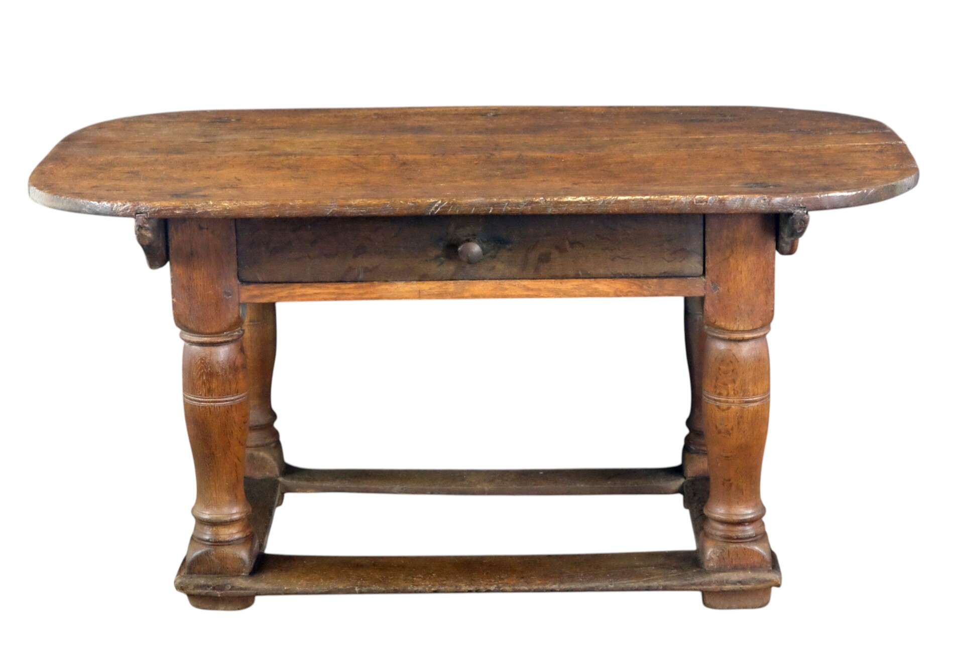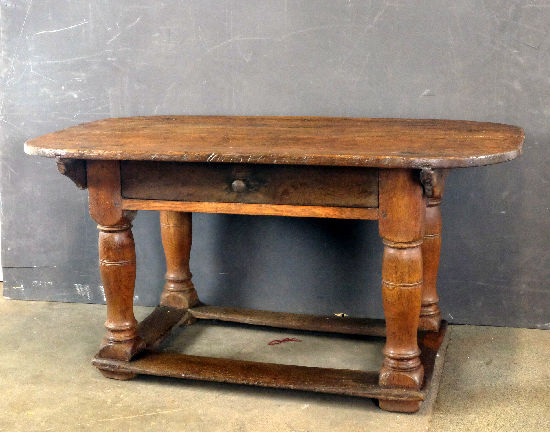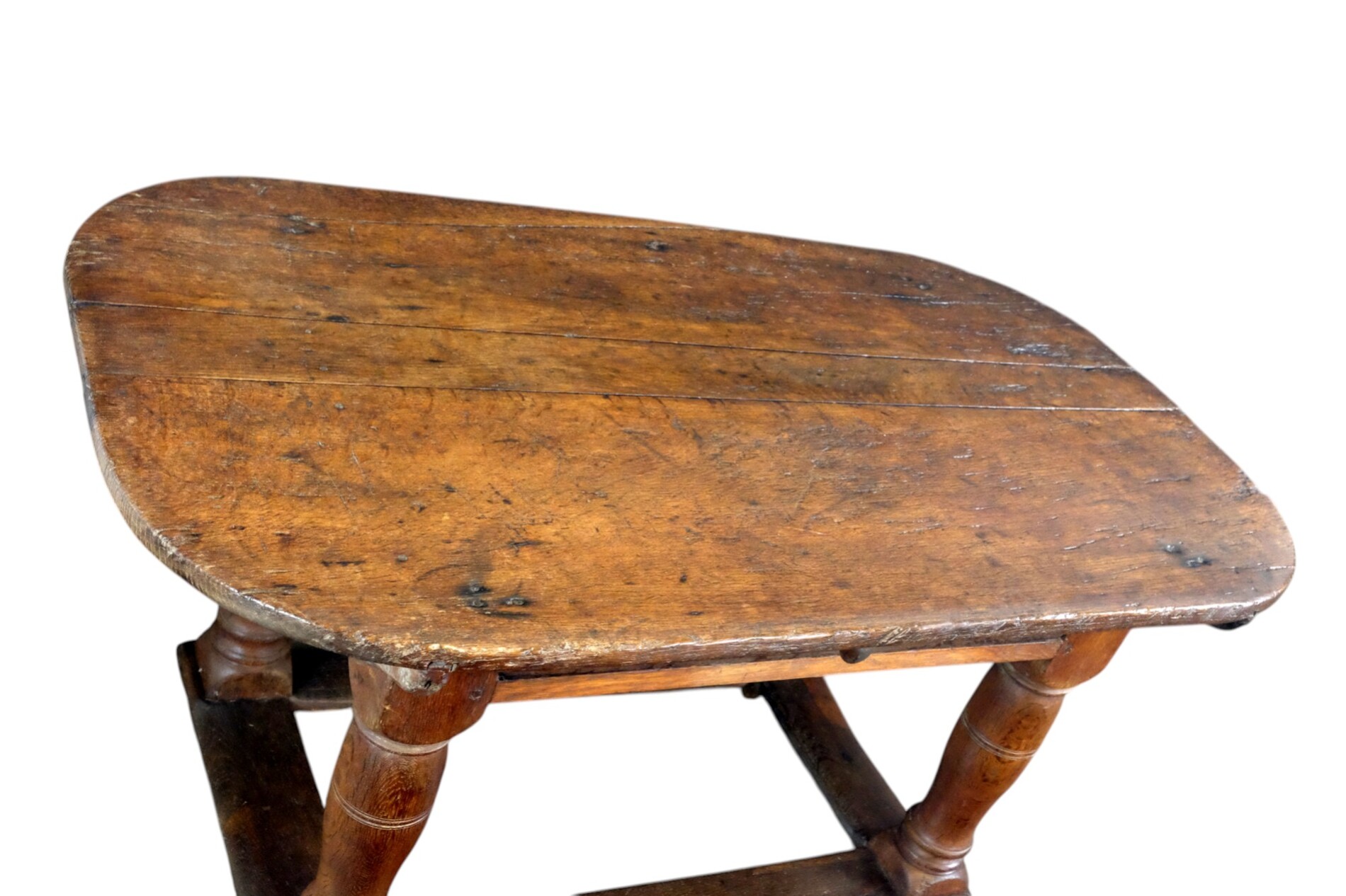 132 cm (51.97 inch)Dutch Oak Table late 17th century with 'flessen poten', bottellegs.
