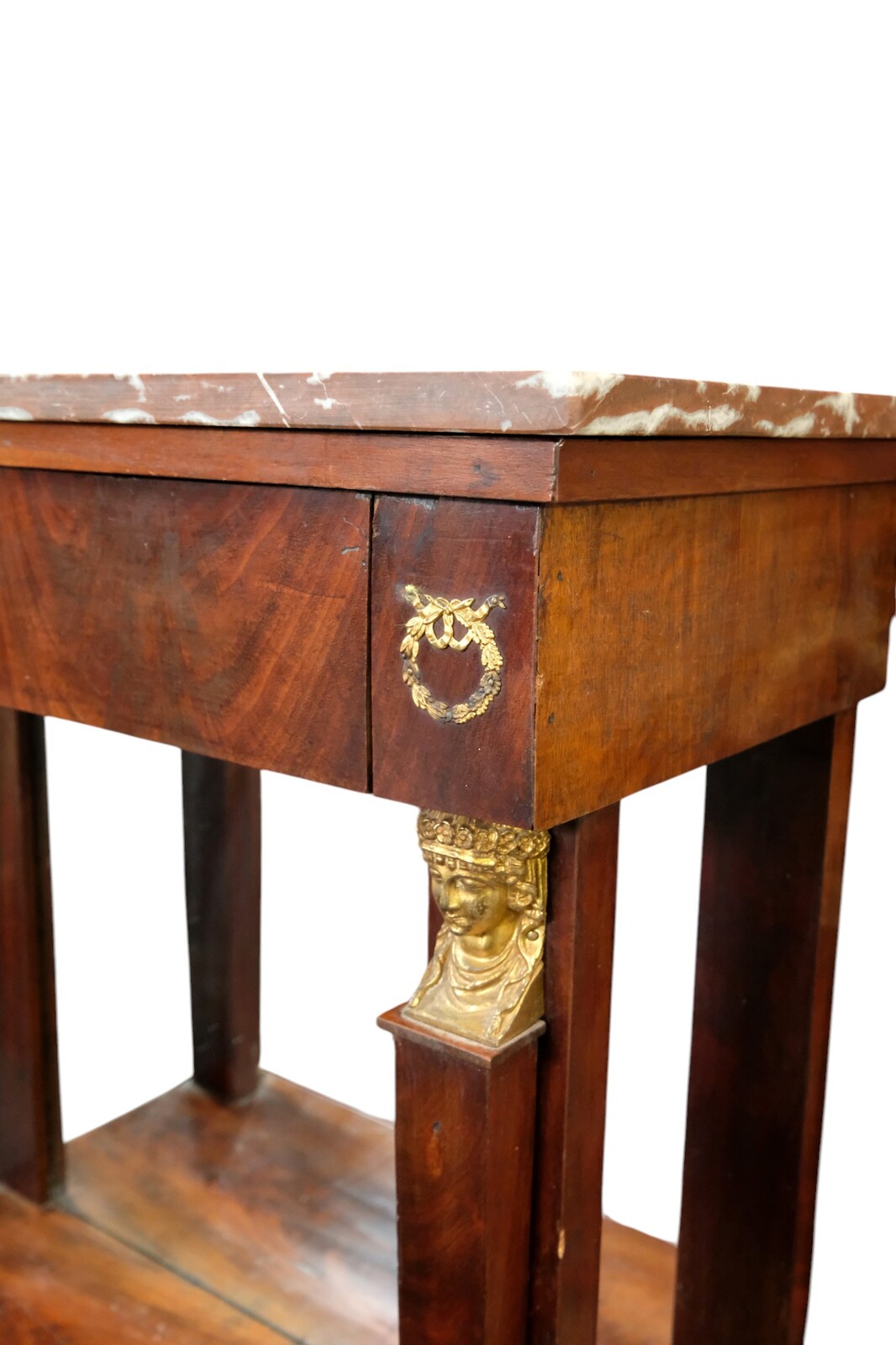 Beneath the marble top is a drawer.